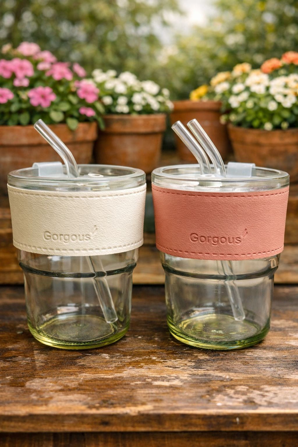 Glass Coffee Cup with Straw & Lid, Anti Skid Leather Sleeve Grip Handle Tumbler Mug for Hot & Cold Beverages, Reusable Glass Sipper for Tea Coffee Smoothies Juice 400ML(Set of 1)